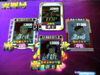 はい、残りの1人は覇王で一通ドラ2の満貫。