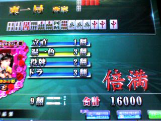 ロン!リーチ一発ドラ3に裏1で12000!