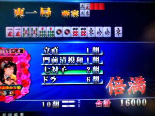 リーチ七対子ドラ2に裏2枚の跳満に刺さって、