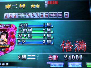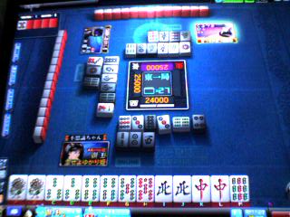 モロ引っ掛けリーチで対面から跳満直撃♪