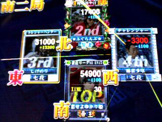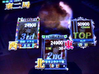 南2局で上家の親が親満ツモで下家がトビw