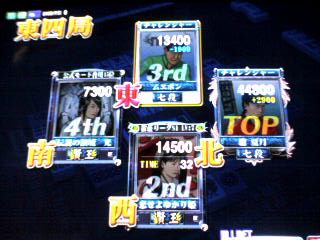 トビ終了。2位でLP+13です。